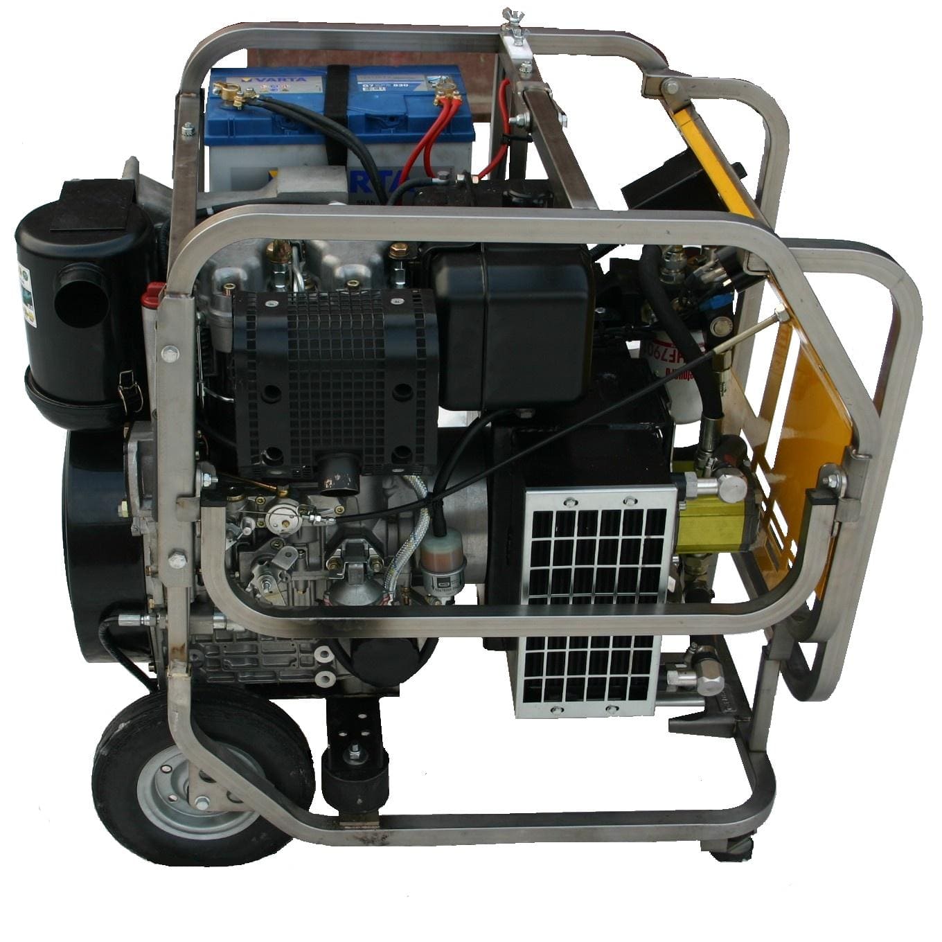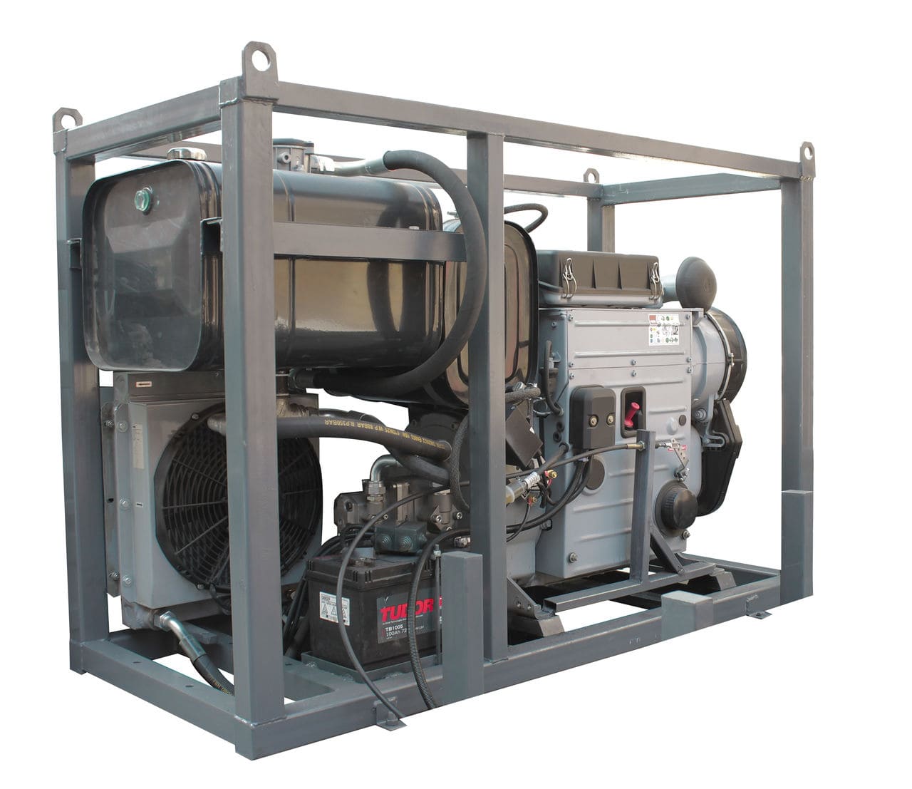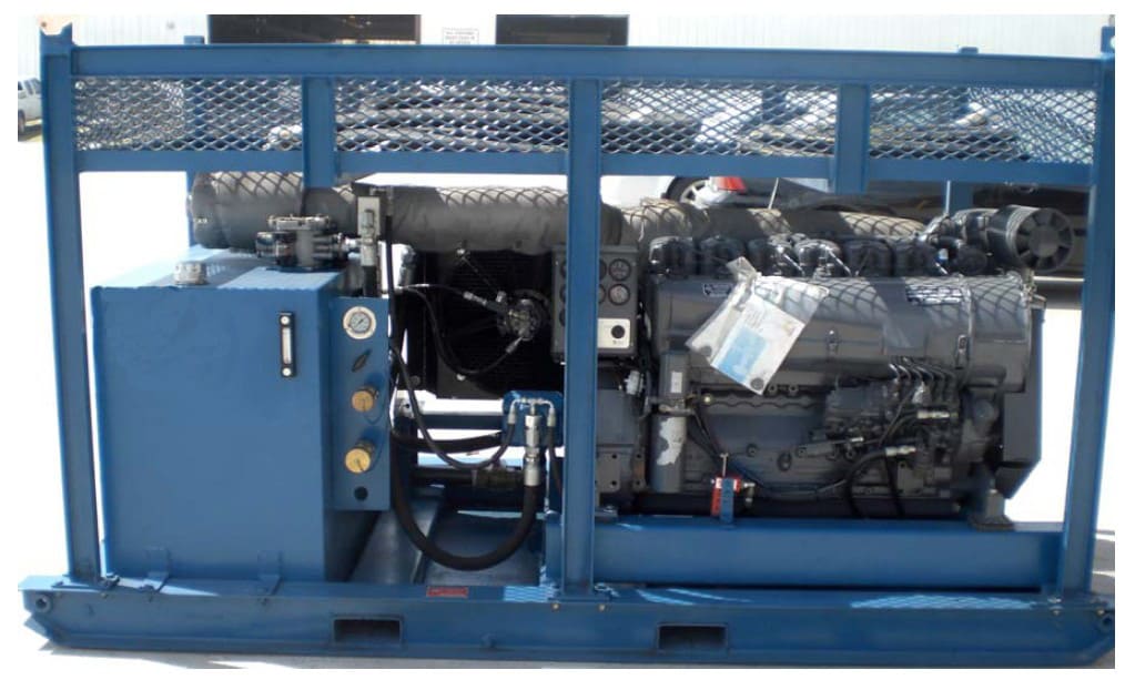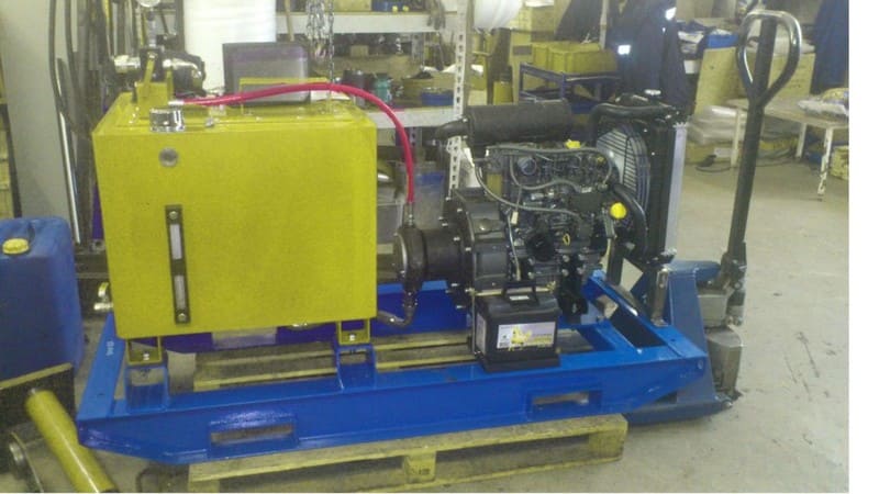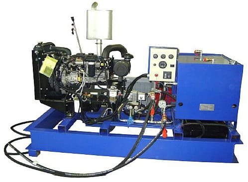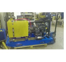 Дизельные гидростанции это полностью автономные насосные агрегаты с двигателем до 400 лошадиных сил, с максимальной подачей масла до 250 л/мин под давлением до 700 бар. Гидростанции обеспечивают работу погружных шламовых помп, буровых установок, противофонтанного оборудования, систем гидроприводов, вибропогружателей для свай, гидромолотов, земснарядов, машин бурошнекового бурения, манипуляторов, землеройных самоходных агрегатов. Эффективная система охлаждения позволяет длительно работать в интенсивном режиме с высокой производительностью. Изменением частоты вращения ДВС можно регулировать поток рабочей жидкости. В специальном исполнении агрегат выпускается в шумозащитном кожухе.