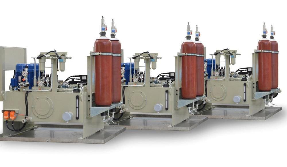 2. Давление от 63 до 700 бар. Гидроаккумуляторы могут использоваться как часть технологического оборудования, которое совершает кратковременно сверхбыстрые перемещения. Благодаря высокому давлению такие маслостанции могут использоваться для обеспечения работы прессов, прокатных станов, испытательных стендов.