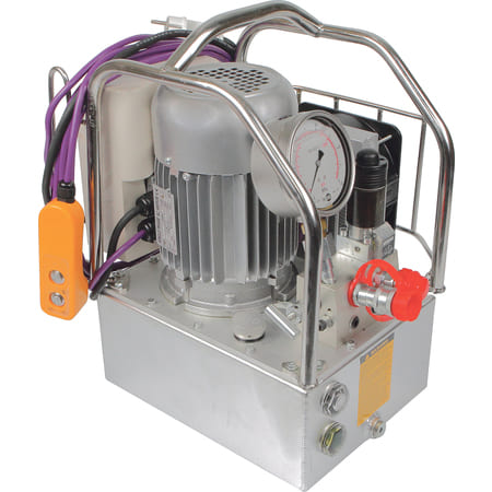 Гидростанции 220 вольт – это наиболее универсальное оборудование, с приводом от электромотора мощностью до 2,2 кВт, который подключается к общепромышленной однофазной электросети. Станции могут обеспечивать работу оборудования небольшой мощности: вспомогательные прессы, съемники, домкраты грузоподъемностью от 5 до 200 тонн, трубогибы, режущий, монтажный и заклепочный инструмент, оборудование для работы с токоведущими шинами, гайковерты и гидравлические ключи, мультиплекаторы давления и др. Для управления потоком используются ручные и электромагнитные гидрораспределители, для автоматизации - микроконтроллеры.