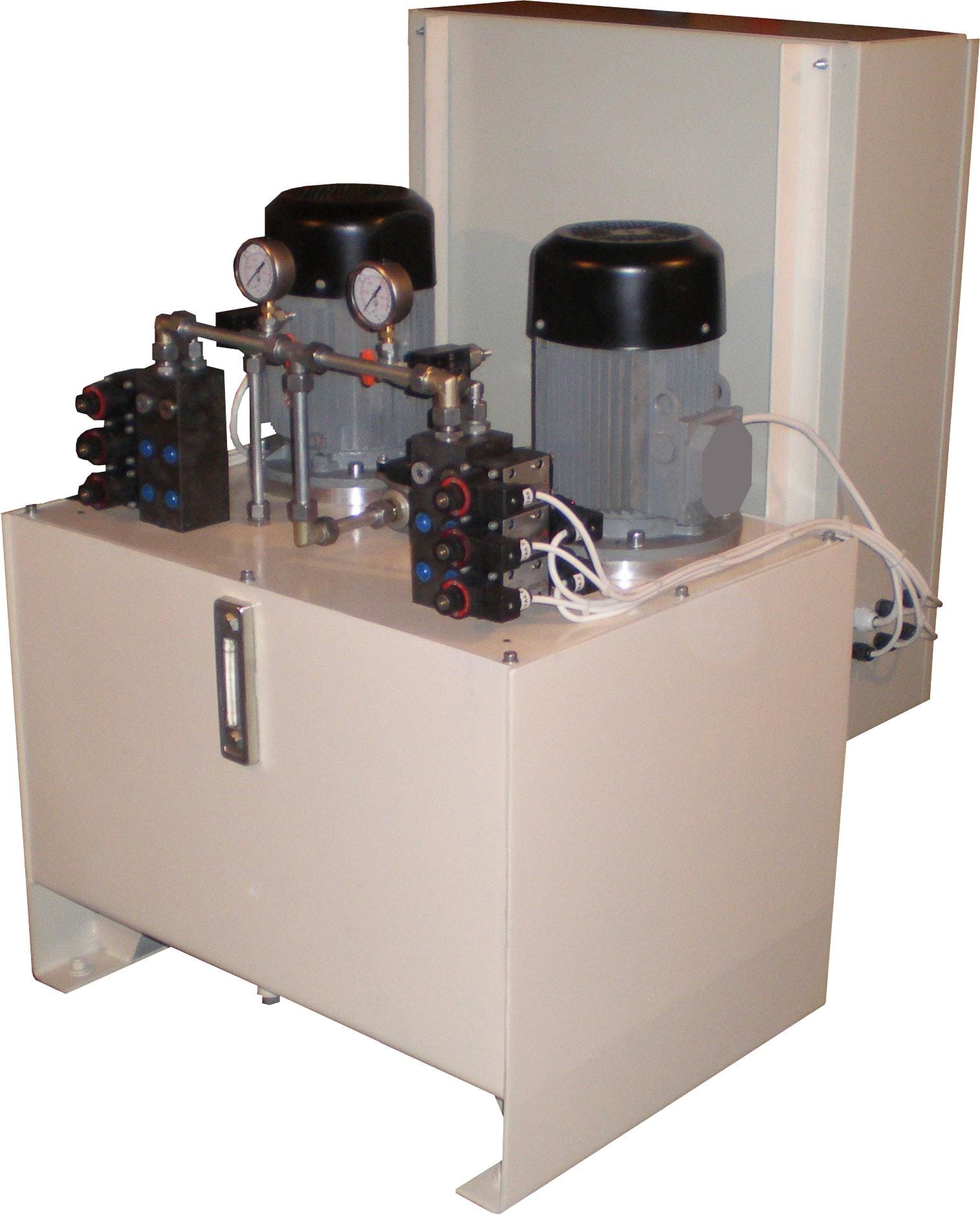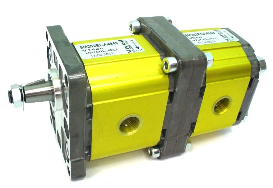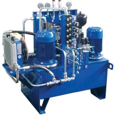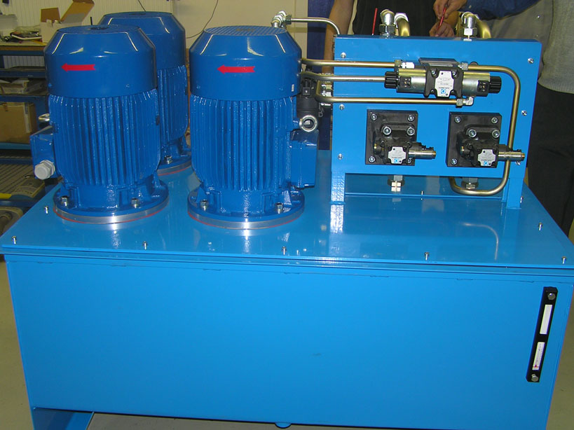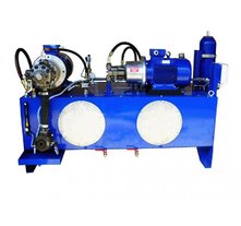 Гидростанция с двумя насосами применяется в гидроприводах производственного оборудования, когда требуется двухступенчатая подача, либо раздельная независимая работа исполнительного оборудования. Подача потока масла в магистрали производится со скоростью от 5 до 150 л/мин, давление жидкости составляет от 100 до 350 бар. Применение двух насосов в конструкции станции обеспечивает быстродействие гидрооборудования и агрегатов высокой производительности, как правило задействованных в непрерывном цикле, поэтому чаще всего требуется оснащение гидросистемы теплообенником. В ряде случаев дополнительный насос задействован на циркуляцию рабочей жидкости по контуру фильрации и охлаждения.