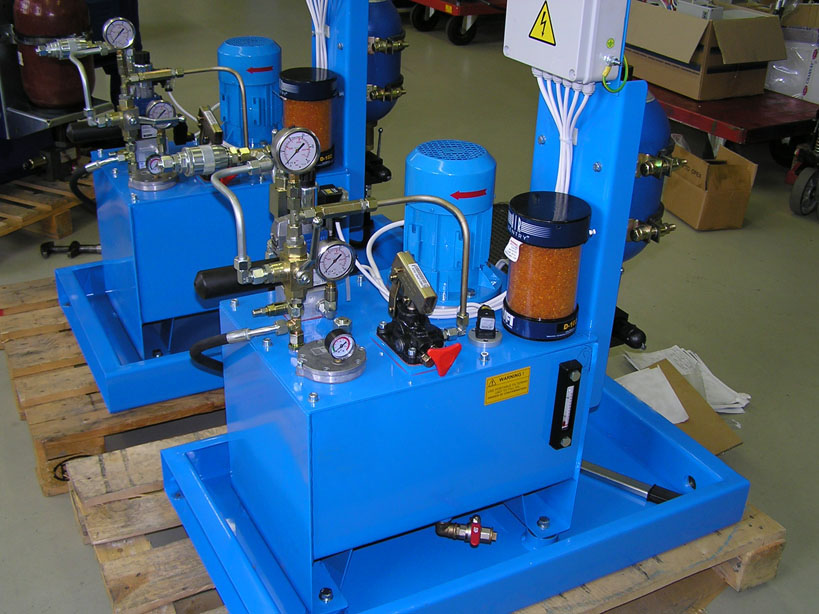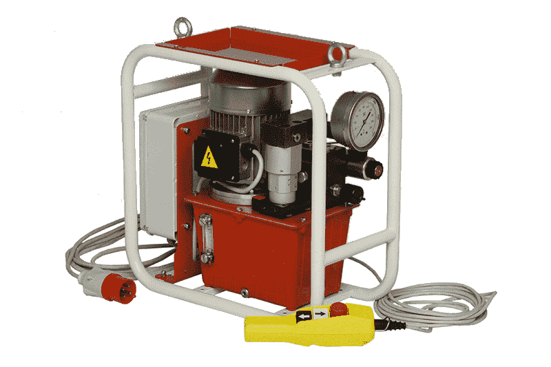 Гидростанции с электроприводом реализуют подачу масла от 0,8 до 25 л/мин, для оборудования, работающего на высоком давлении от 350 до 700 бар. Данные гидростанции применяют для работы гидромкратов, гидропрессов, систем перемещения и подъема, спасательного инструмента, трубогибов, проходческих щитов, испытательных стендов. Объем бака определяется суммарной потребностью исполнительных механизмов и составляет от 8 до 250 литров. Станции имеют вертикальную компоновку с насосом погруженным в бак. В напорной магистрали устанавливается регулятор давления, управление перемещением реализуется гидрораспредлителем.