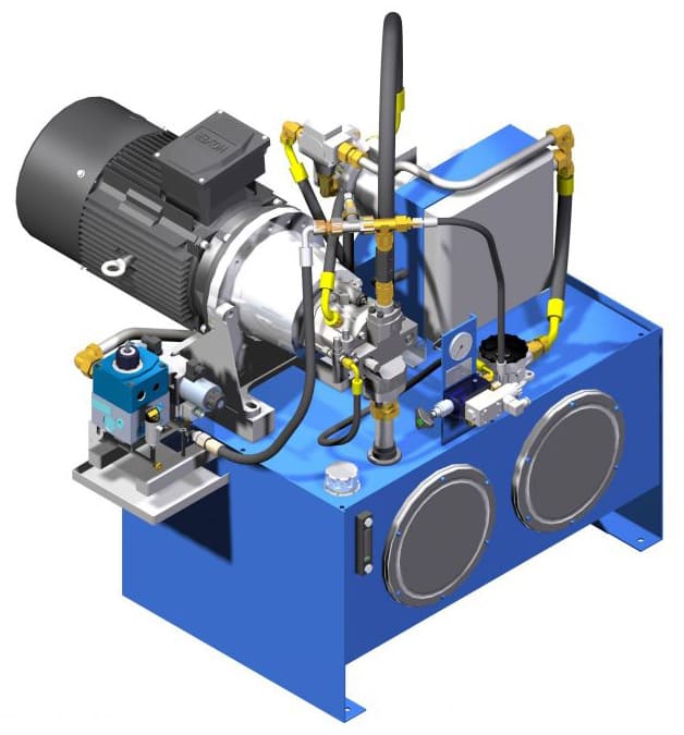 - По завершению этапа проектирования специалисты нашей компании изготавливают детали, необходимые для сборки оборудования. Основными элементами является маслобак, управляющая аппаратура, моторо-насосная группа. Насос и силовой агрегат, а также другие необходимые узлы приобретаются у мировых производителей.