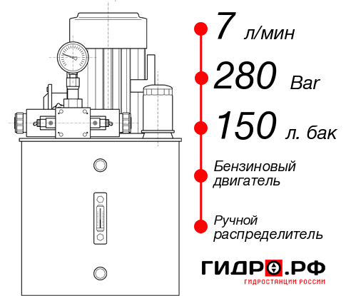 Маслостанция НБР-7И2815Т с давлением 280 бар и гидравлическим контуром 7 литров в минуту. Установлен бак на 150 л и бензиновый мотор. Цена по прайсу с доставкой до адреса в Воскресенске 181062 руб. Рекомендуемая комплетация: дополнительные краны на выходе, гидрозамок на выходных портах, контроль давления в выходных магистралях, вспомогательный ручной насос, обратный клапан на выходе.