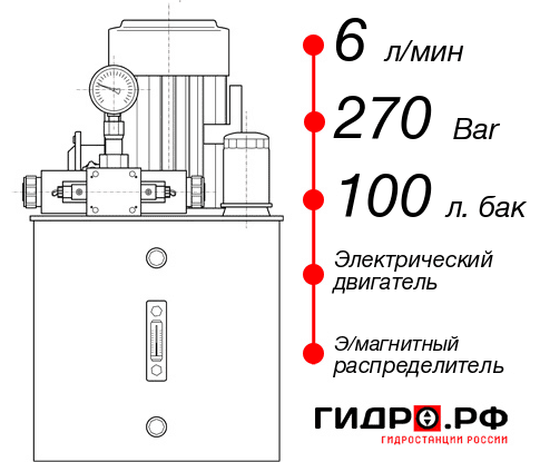 Гидростанция НЭЭ-6И2710Т с подачей 6 литров в минуту и давлением 270 бар. В конструкции применён электрический привод и масляный бак на 100 литров. Стоимость с доставкой до Вашего производства в Воскресенске 104840 руб. Популярные дополнительные опции: контроль загрязнения фильтра.