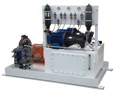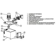 1. Скорость подачи гидравлической жидкости от 5 до 250 л/мин. Быстрая подача масла обеспечивает работу динамических инструментов, а также стационарных технологических линий. Они могут совершать непрерывную работу в течение длительного времени по циклической схеме. При необходимости проектной документацией предусматривается установка теплообменников, которые охлаждают масло.