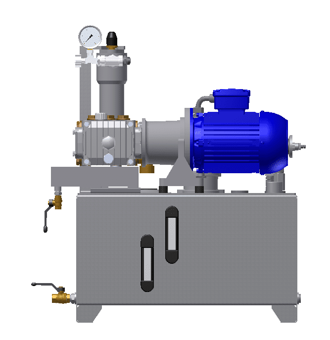 2. Давление масла в исполнительных механизмах в пределах от 100 до 350 бар и выше, до 2500 бар (250 МПа). Станции высокого давления используются для обеспечения работы механизмов, создающих больше усилие. К ним подключаются прессы, подъемники, толкатели, прокольные установки и т.п. Маслостанции, подающие рабочую жидкость с давлением 350 бар и выше, дают возможность уменьшить размеры цилиндров и сократить стоимость исполнительных инструментов.
