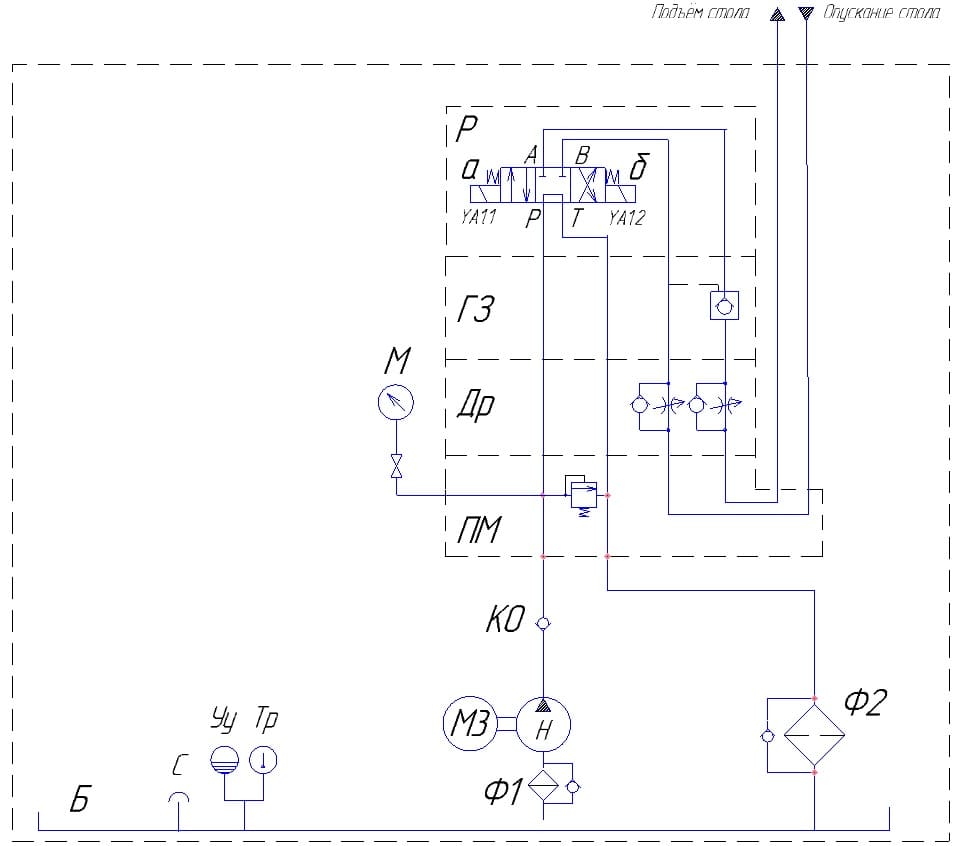 1. Основные параметры. Сюда включаются необходимое давление для работы исполнительных устройств, скорость подачи рабочей жидкости, емкость бака, количество и тип гидрораспределителей.